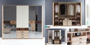 consists of large volumes. Located next to the dresser mirror with glass shelf can put your accessories so that you